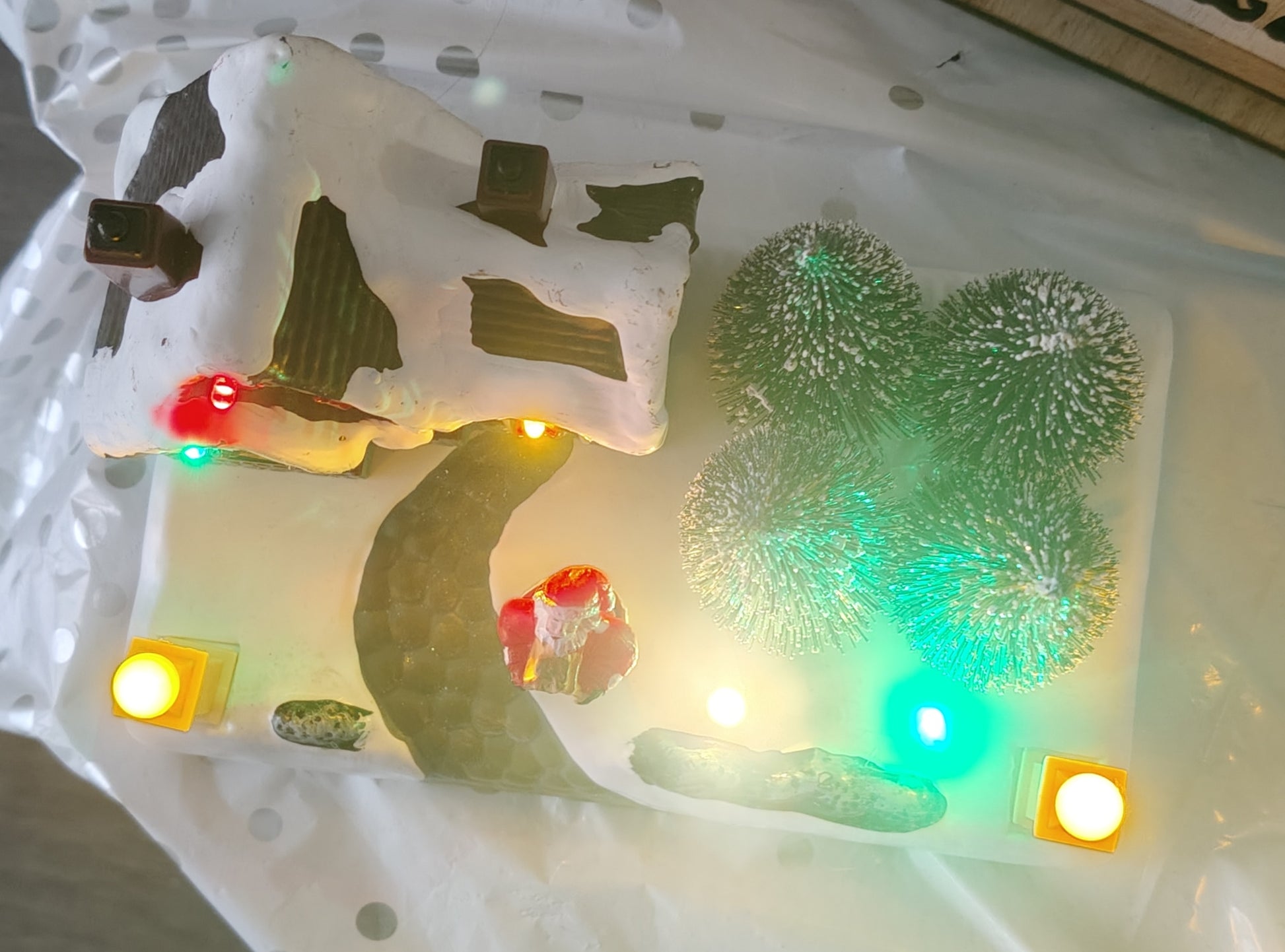 Un piccolo mondo in miniatura che prende vita grazie alle luci LED scintillanti e alle melodie natalizie che diffondono un’atmosfera calda e accogliente.