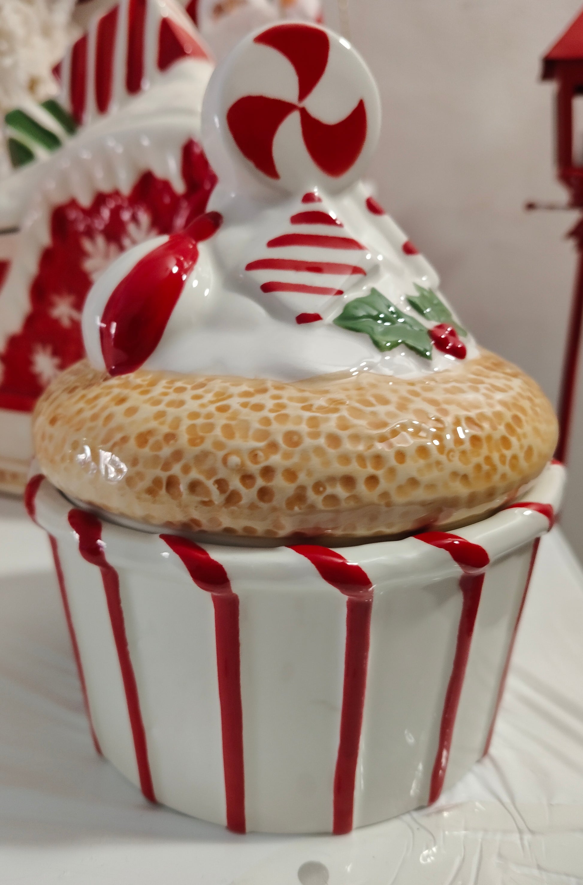 Biscottiera Muffin Natalizia in Ceramica Bianca e Rossa