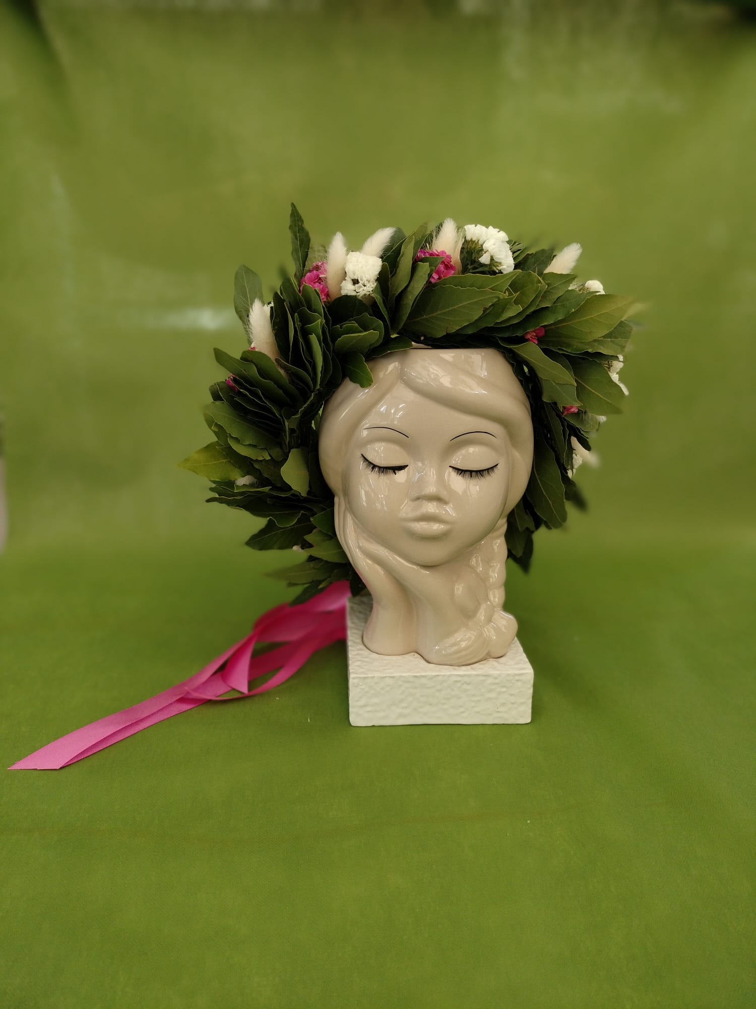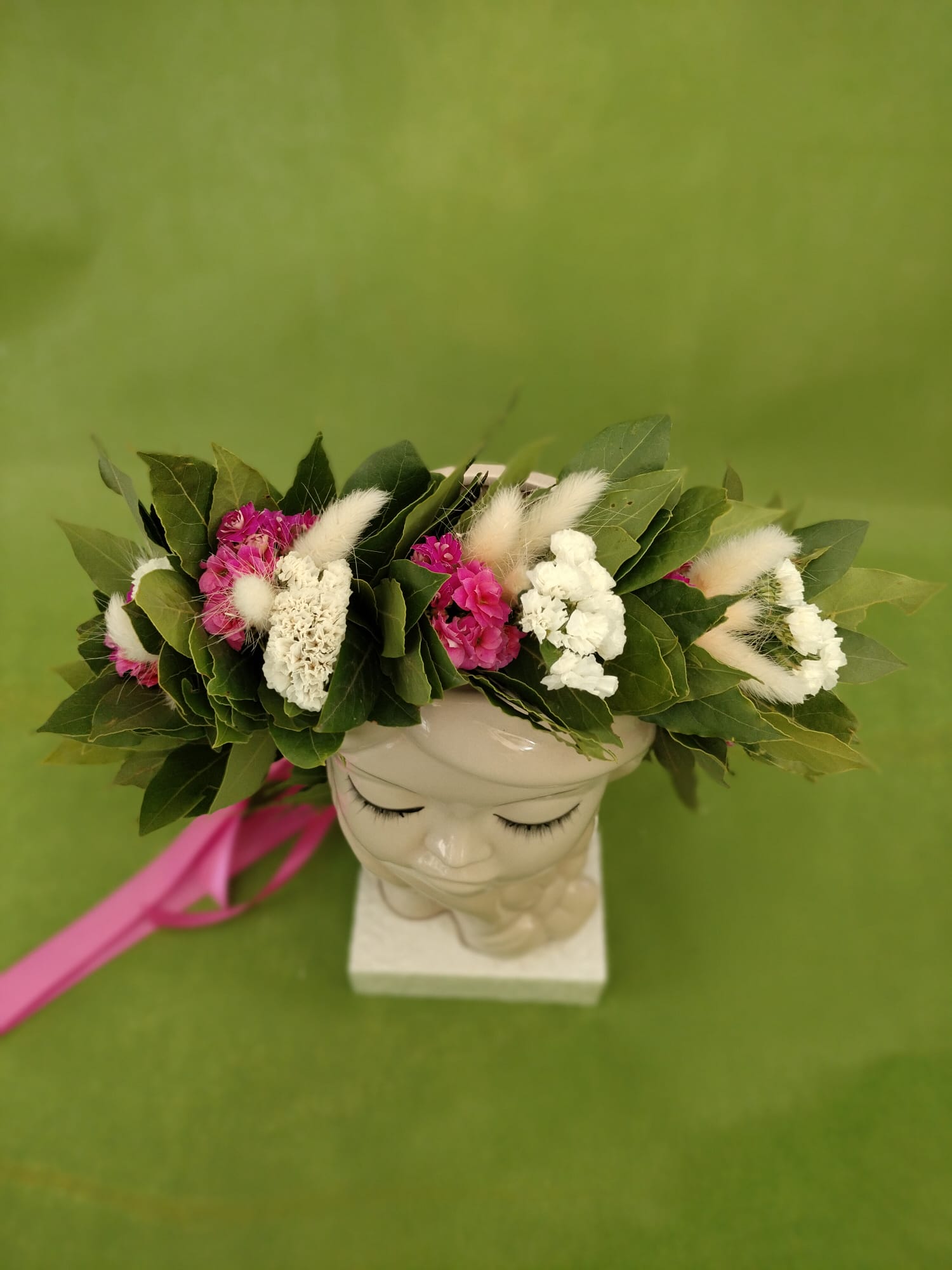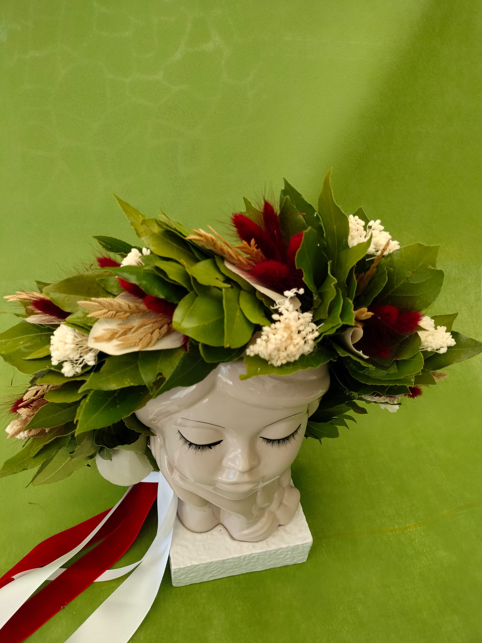 Si effettuano su richiesta coroncine di alloro con fiori freschi o stabilizzati, l'alloro è sempre fresco, per Laurea, Diploma, Bambini uscenti Elementari