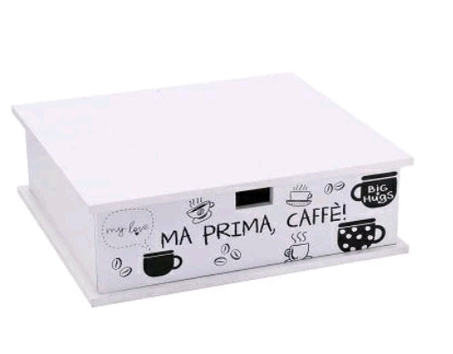 Aggiungi un tocco di stile al tuo angolo caffè con il nostro portacialde in legno, disponibile nei colori bianco e tortora. Progettato per mantenere le tue cialde sempre in ordine e a portata di mano, questo accessorio unisce praticità e design moderno.