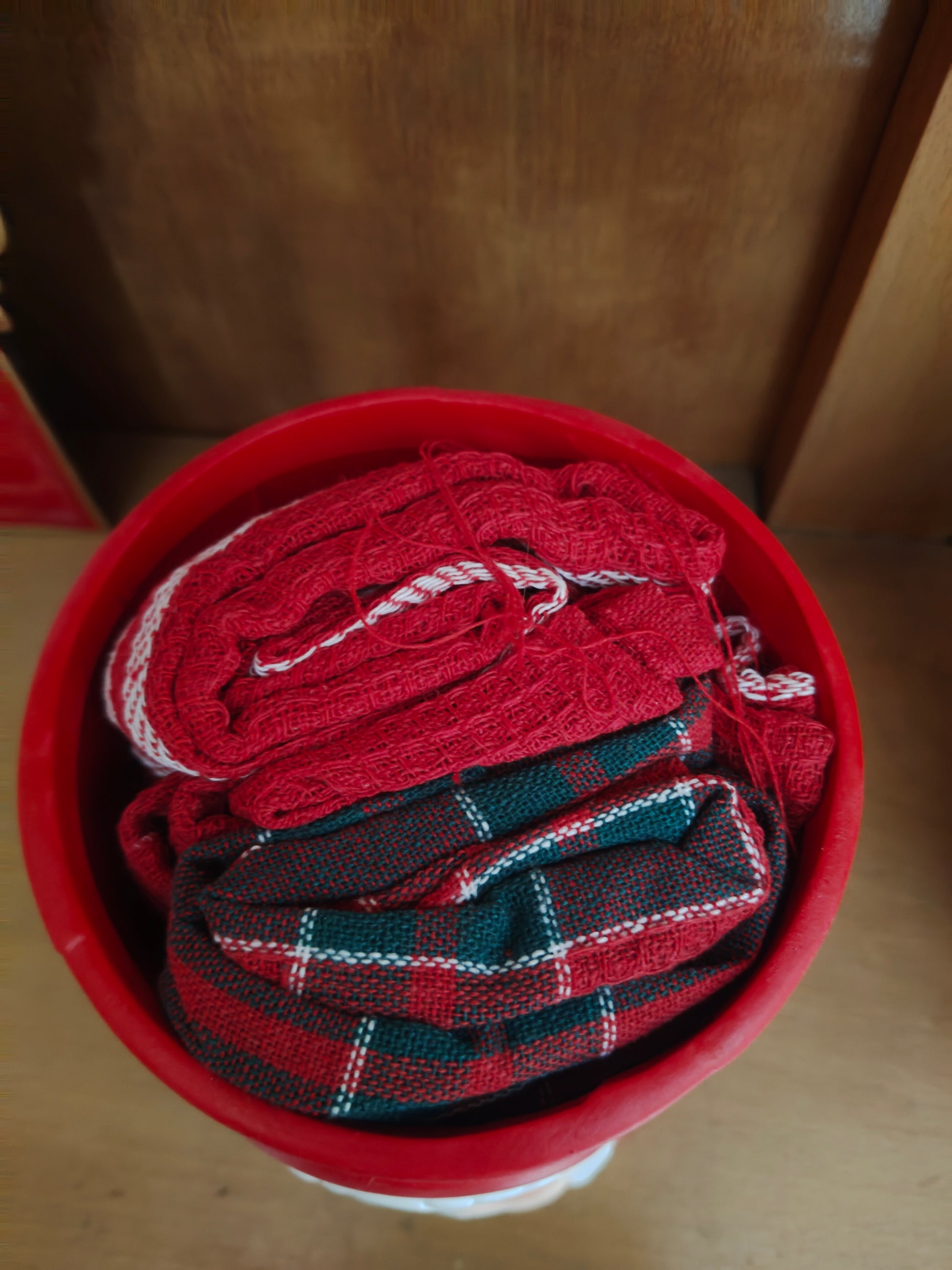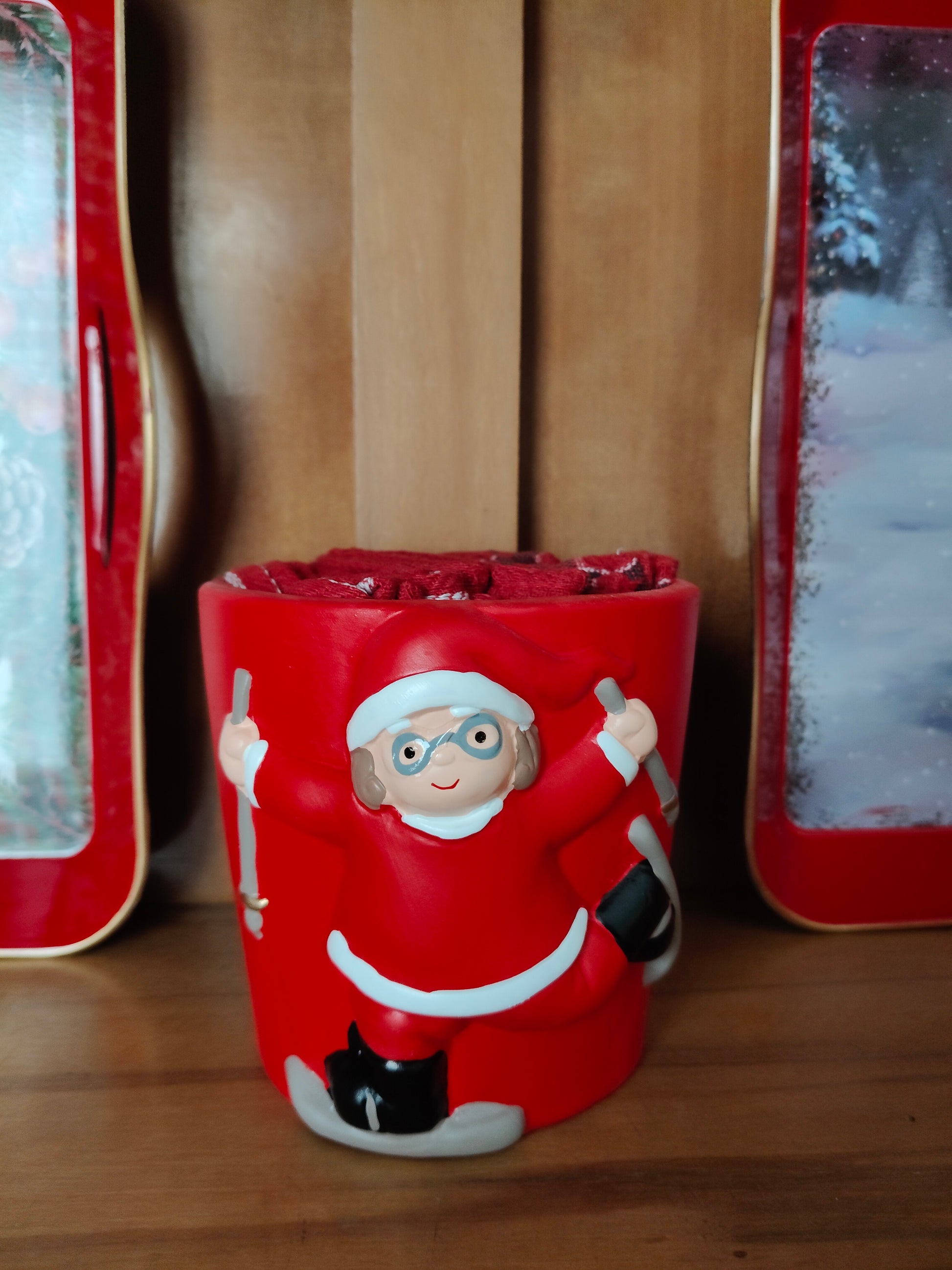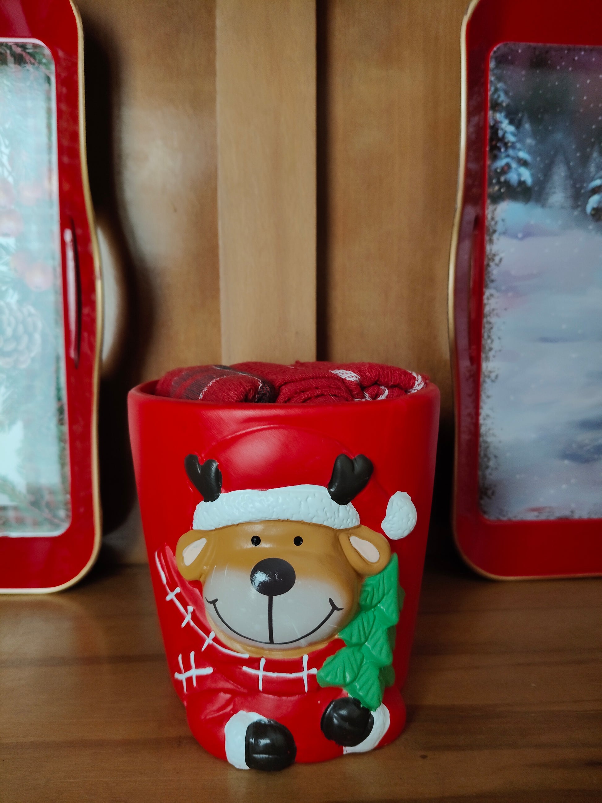 Vaso in Ceramica Rosso con 3 Strofinacci Grandi – Motivi Natalizi assortiti 🎅✨